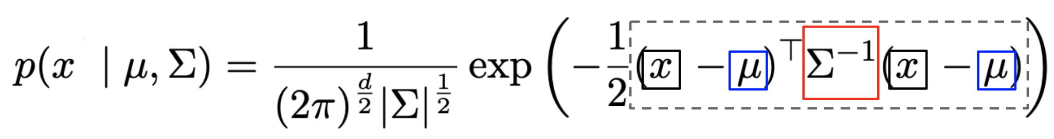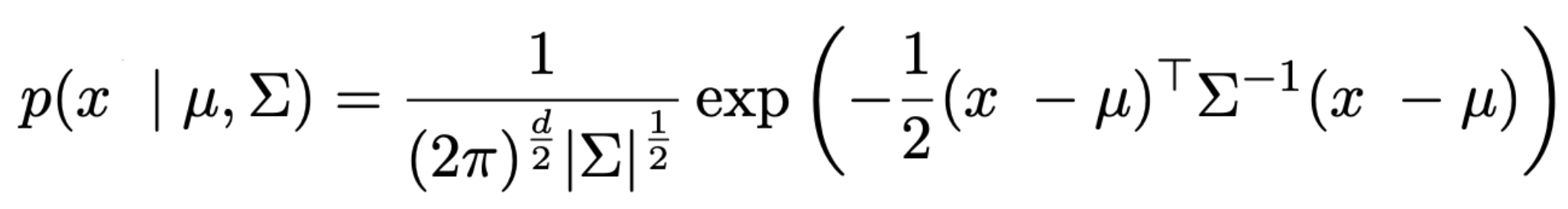 여기서 exponential 안쪽의 각 항에 위치하는 애들이 mean 과 covariance 의 의미를 가진다.