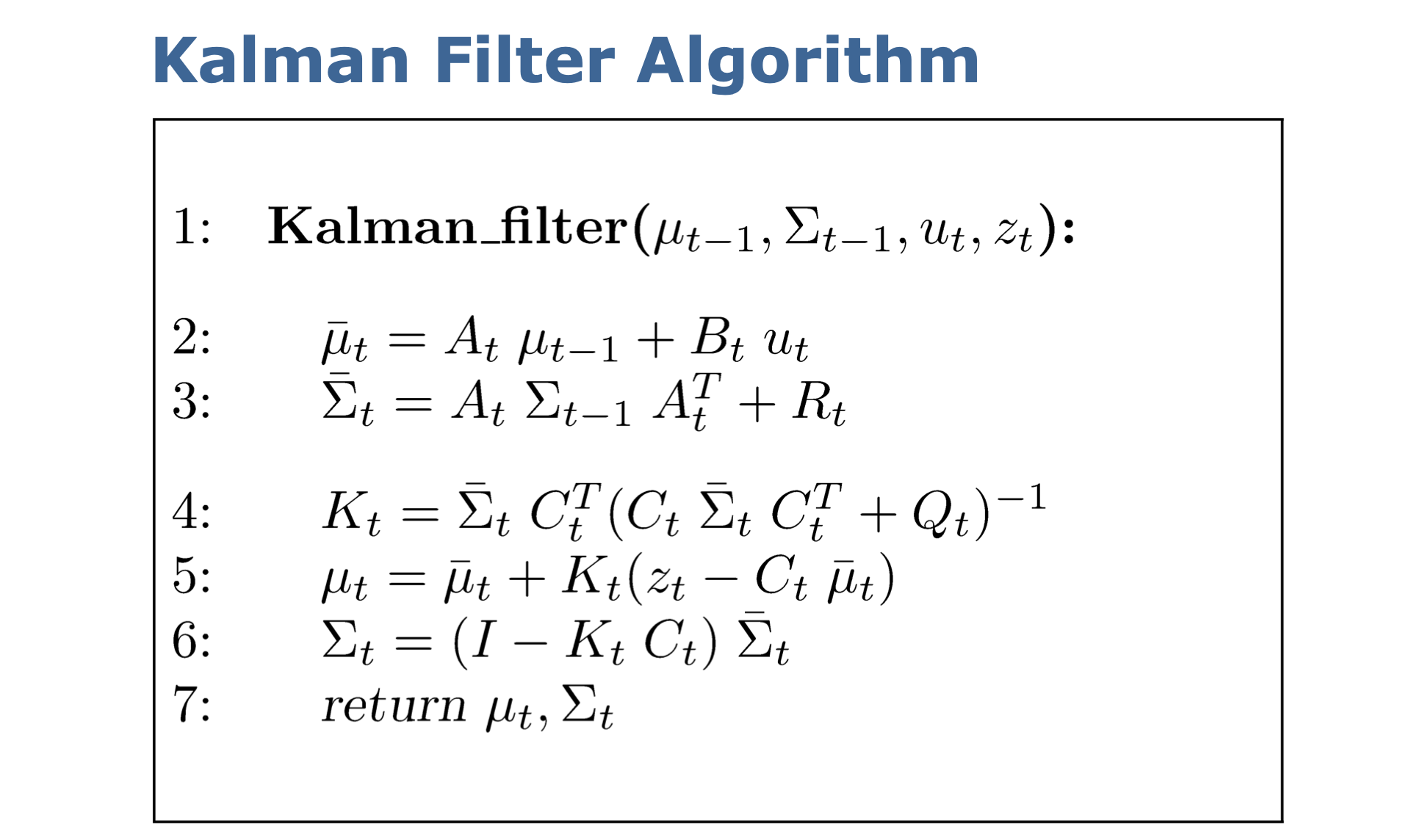 4, 5, 6 번째 줄이 우리가 방금 유도한 $\textbf{K}_t$, $\textbf{m}_t$, $\textbf{P}_t$ 와 생김새가 같음을 알 수 있다!